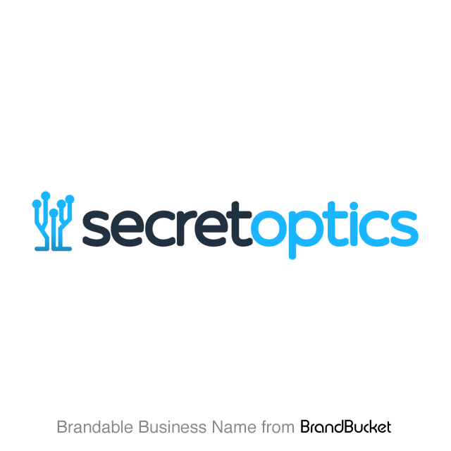 Secret Optics: An unusual combination that easily piques interest. Possible uses: A fiber optics brand. A production studio. An eye wear brand. A VR company.